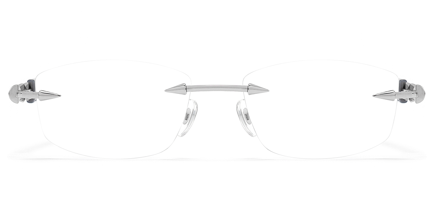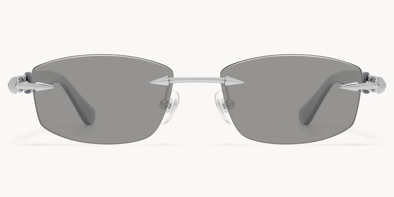 Fracture is a rimless sunglasses frame with grey acetate temples and precision-engineered metal details at the bridge. The sleek design is lightweight and durable, offering both comfort and a commanding presence, ideal for those seeking a restrained yet bold eyewear solution.