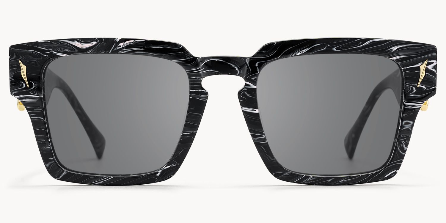 Stiletto is a sculptural square Sunglasses frame featuring a black marble acetate finish with layered patterns, combining rigidity with tactile depth. Gold dagger-inspired metal hinges reinforce stability and strength, ideal for elevated styling with a sharp, authoritative edge.