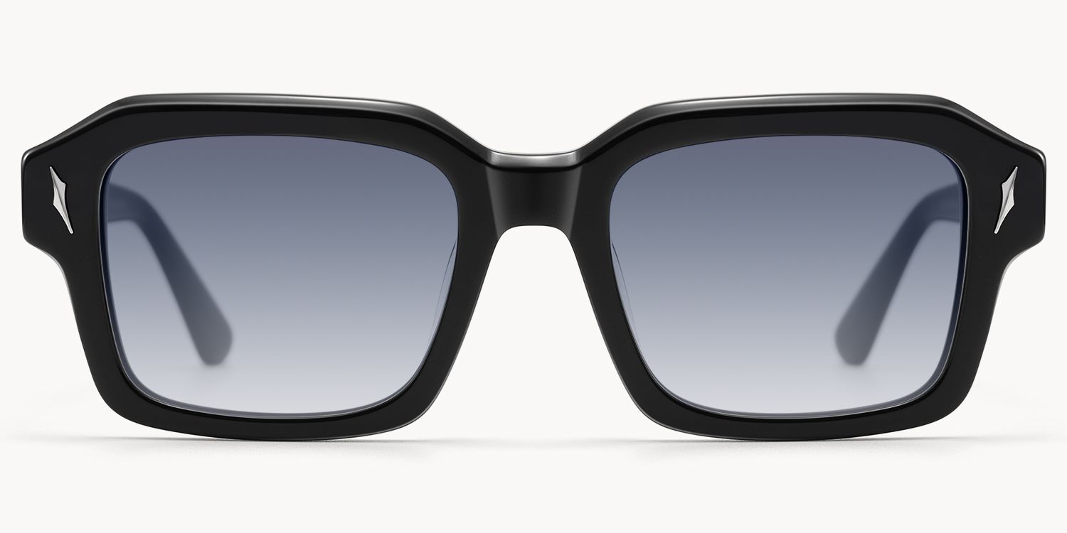 Blindspot is a bold square frame with black acetate and sculptural metal temples, featuring sharp, angular detailing. The combination of dark acetate and silver-tone accents delivers a sleek yet powerful aesthetic, perfect for those who embrace modern edge and refined strength.